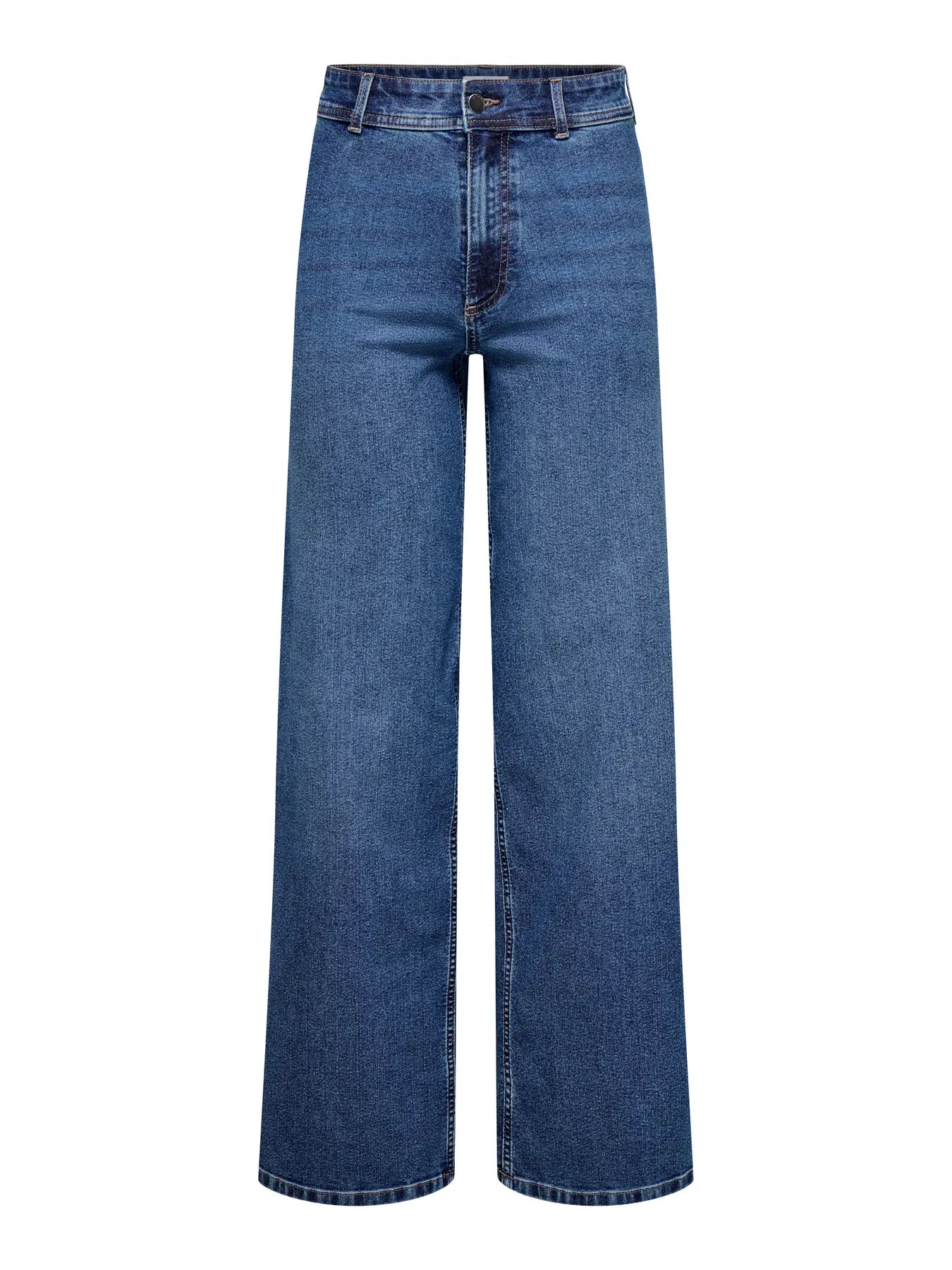 Con un corte ancho que ofrece amplio espacio desde la cadera hasta el tobillo, estos jeans de talle alto realzan tu figura mientras garantizan libertad de movimiento.